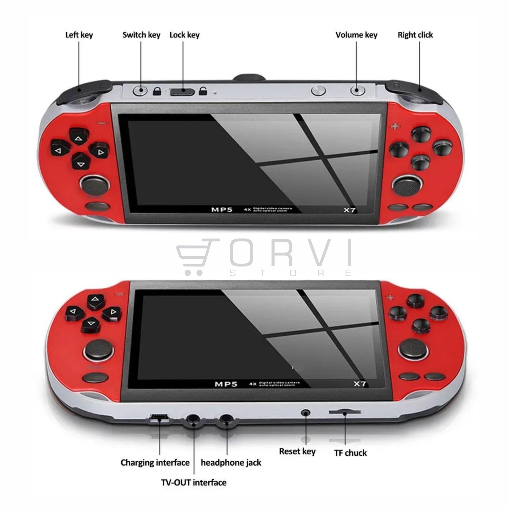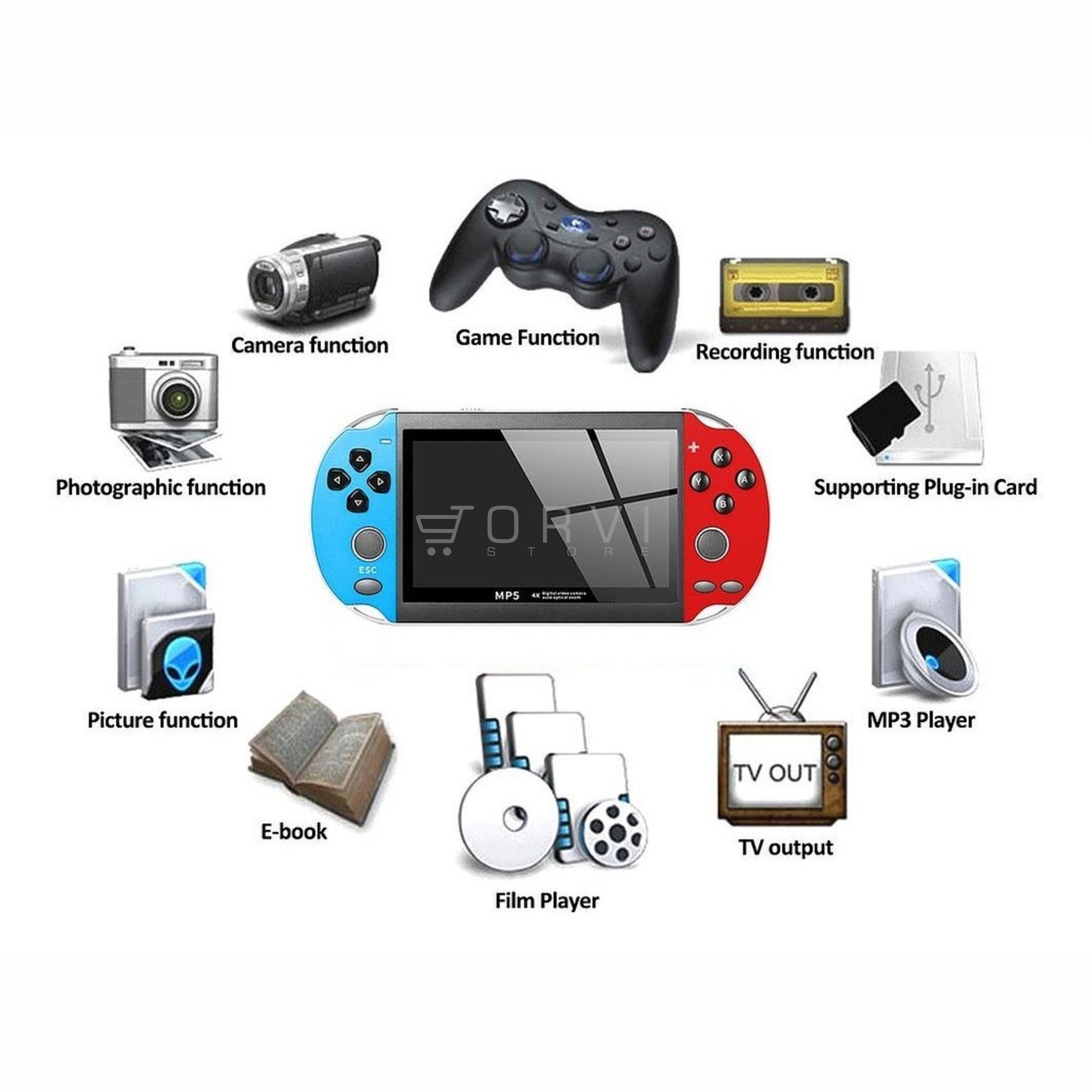 • También puedes conectar al televisor y transferir el juego al televisor para una mejor experiencia de juego. También es un reproductor de música MP3/Videos MP4/visor de imágenes/e-book/grabadora
