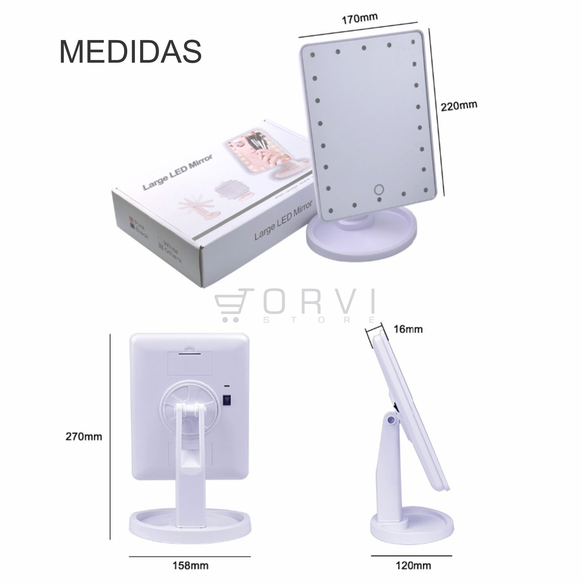 Espejo Luz Led Pantalla Táctil Touch Maquillaje Pilas o Conexión cable USB